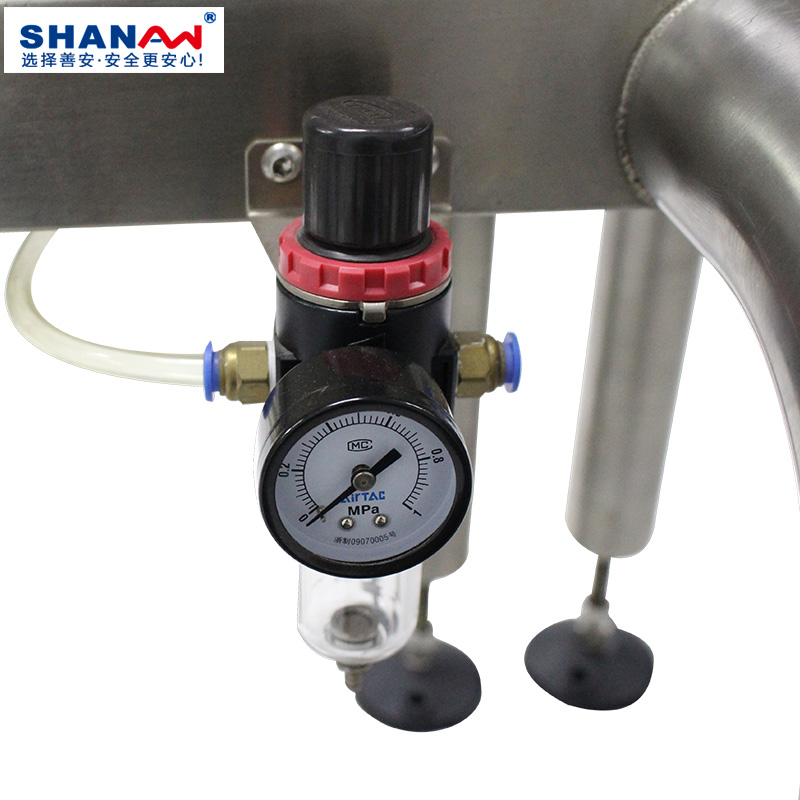 6 | 氣吹式剔除裝置,防止產品未100%剔除故加裝兩個氣嘴進行確認,保證檢測物的完整性,針對不同產品做不同的剔除方式。 |